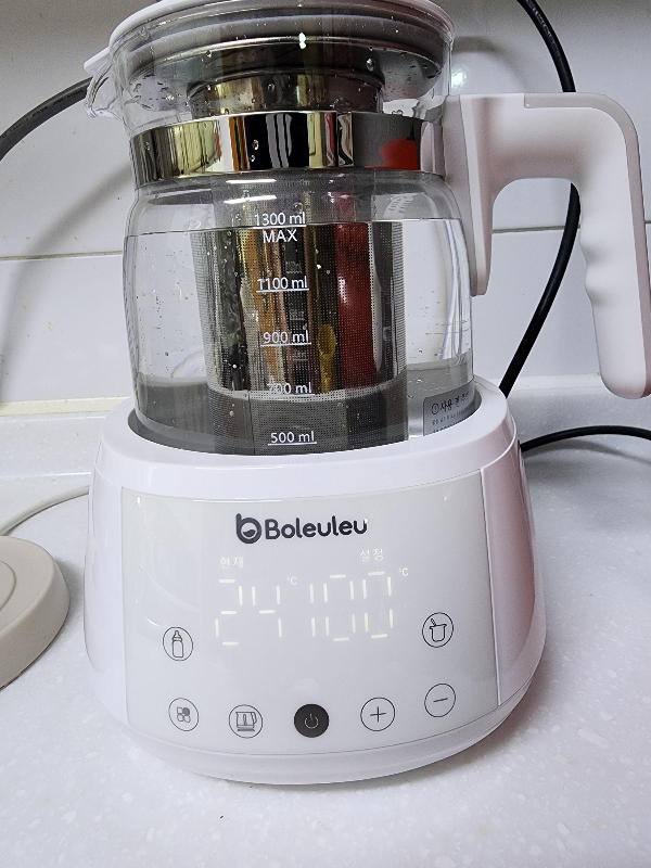 그리고 원터치 버튼의 경우, 타 제품 후기를 읽어보면 물을 끓이고 보온버튼을 누르지 않아서 물이 식었다는 글을 볼수 있다. 보르르는 분유모드의 경우 43도로 자동 세팅이 되어있어서 다른 버튼을 누를 필요가 없다. 복잡하지 않고 간단하게 조작이 가능하다.