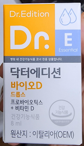 그리고 모유, 분유를 제외하고 먹은 것이 있다. 비타민 D와 함께 들어 있는 유산균이다. 생후 6개월까지 되는 신생아들은 가루 유산균을 먹이지 않고 액상 유산균을 먹인다고 한다. 그래서 출산과 동시에 입원실에 들어가기 전에 간호사 선생님이 말씀해 주신다. 비타민 D를 먹여야 하는데 병원 내 건강기능식품 코너에서 판매를 하고 있다고 설명을 해준다. 물론 이건 부모의 선택이며 사 가지고 오시면 먹이고 아니면 안 먹인다고 한다. 그래도 먹이는 것이 좋으니 설명해 주는 거겠지라는 생각에 비타민 D를 구매해서 간호사 선생님께 전달을 했다. 아래 그림과 같이 생긴 제품인데, 큰 박스에 3병이 들어 있다. 가격은 128,000원이었다. 한 병당 1개월 정도 먹인다고 하니 1개월에 약 42,700원꼴이다. 모유와 함께 먹일 때는 변비에 대한 걱정 따위가 없었기에 문제가 없었다. 하지만 분유를 먹기 시작하면서 생긴 변비에 대한 고민에 이것도 문제가 되지 않을까 생각했다.