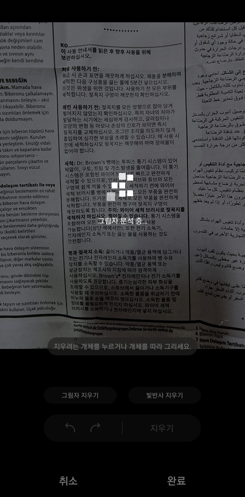 그림자가 제거되었다는 멘트와 함께 그림자가 말끔하게 사라져 있는 것을 볼 수 있다. 필자가 이 기능을 처음 사용했을 때는 정말 깜짝 놀랐다. 생각한 것보다 AI가 그림자를 분석하여 완벽에 가까웁게 그림자를 지워준다. 다음으로 빛반사 제거도 한번 해보도록 하자.