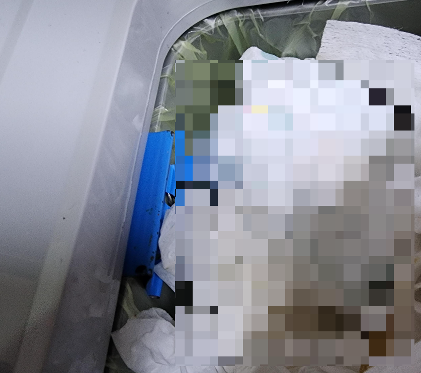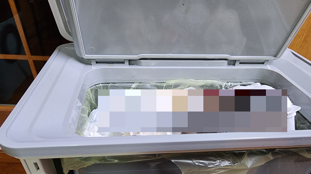 그래서 종량제 봉투를 뺄 때는 조금 신중해질 필요가 있다. 조금씩 조금씩 조물조물해주면서, 쓰레기들이 밑으로 내려올 수 있게 내려주면서 빼야 한다. 물론 필자는 항상 잘 빼지만, 독자들에게 보여주기 위해 일부로 조금 흘려 본 것이다. 정말이다. 조물조물하면서 누르는 것은 대충 느낌을 알 것이다. 느낌을 잘 살려서 쓰레기봉투를 빼기 바란다.