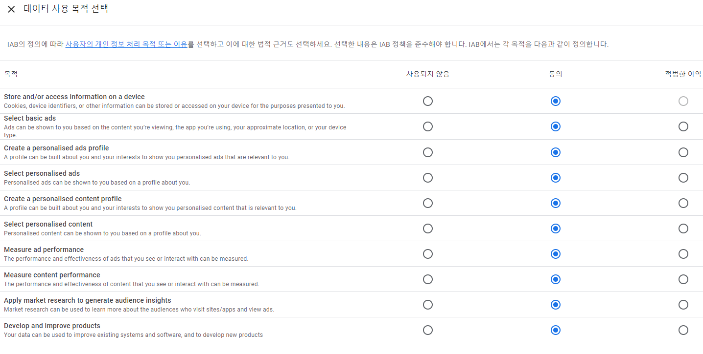 맞춤 광고 파트너와 같이 2가지 메뉴가 있는데,이도 만질 필요 없이 그냥 두는 것이 좋아 보여요.