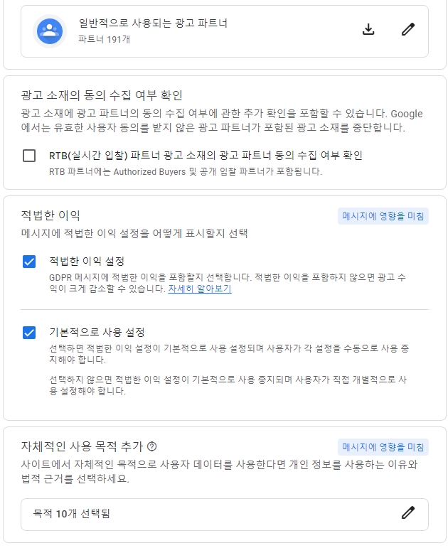 그리고 일반적으로 사용되는 광고 파트너로 설정되어 있죠.