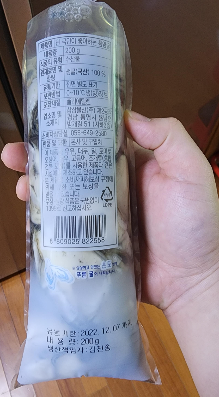 이 제품의 풀네임이다. 앞에서도 말했듯이 전 국민이 좋아하진 않다. 좋아하는 사람만 엄청나게 좋아하는 굴이다. 포장이 깔끔하고, 굴의 사이즈가 중굴 이상으로 컸다. 그리고 껍데기가 까져있다는 엄청난 메리트가 있다. 껍데기가 많아서 망 채로 구매해서 집에서 먹게 되면, 쓰레기가 엄청나게 나오기 때문에 쉽게 구매가 꺼려지기 때문이다. 내용량은 200g. 얼핏 보면 양이 얼마 안되는 것으로 느껴질 수도 있다. 하지만 이 한 봉지면 혼자서 먹게되면 생각보다 많은 양이라고 느껴진다.