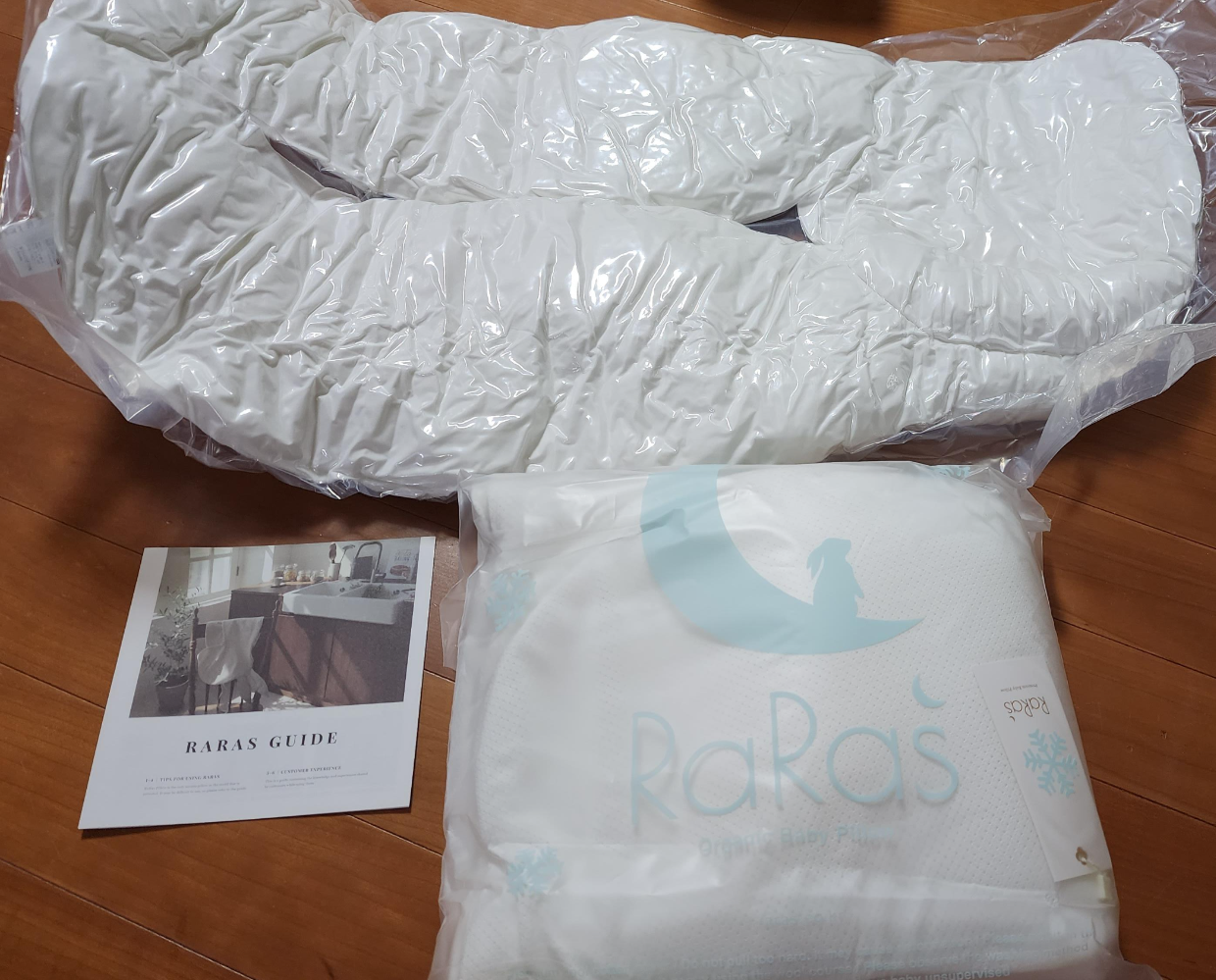 구성은 라라스 베개 본 제품과 커버, 그리고 설명서이다. 일반 베개와 같이 솜 부분과 커버 부분이 나누어져 있다고 보면 된다. 커버는 오염되었을 때 세탁이 가능하게 분리가 가능하다. 그리고 본 제품에 솜의 양을 조절할 수 있게 지퍼가 달려 있다. 아이가 불편해하면 솜의 양을 조절해서 편한 자세로 만들어줘야 한다. 뒤쪽 부분에 솜이 많이 들어 있어서 필자는 솜을 많이 빼서 보관을 해놓았다. 이 부분은 여러 번 눕혀보고 아이가 잘 자는지, 목이 꺾이지는 않는지 살펴보고 조금씩 조금씩 조절해주면 된다. 설명서에 자세히 나와 있으므로, 같이 동본 된 설명서를 잘 읽어보기 바란다.