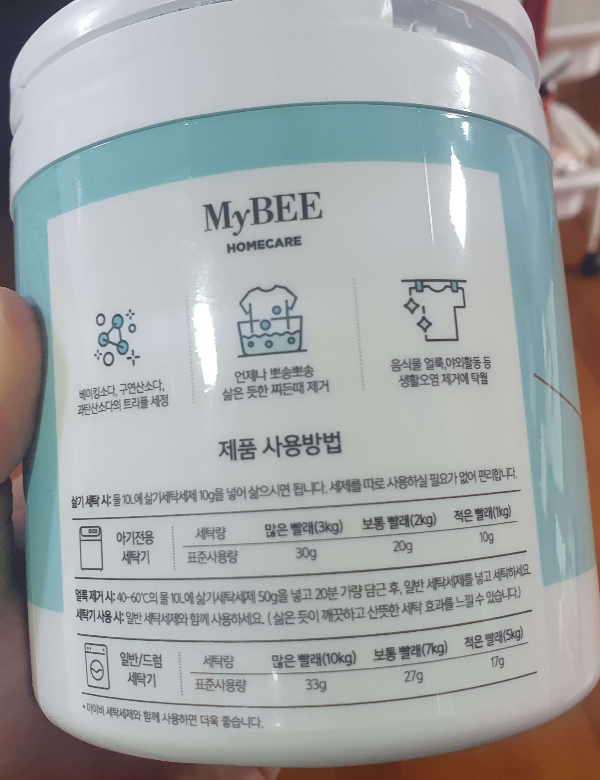 제품 팔이는 아니고... 아기용품점에서 적당한 삶기 세탁 세제를 구매하면 된다. 성분을 보면 베이킹소다, 구연산, 과탄산소다 이렇게 들어있다. 집에 이 세 가지 천연세제가 있다면 이것을 넣어도 무방하다. 제품 사용방법을 보면 세탁기에 세제 대신 넣어서 삶는 방법이 나와 있다. 하지만 필자는 들통에 삶았다. 삶는 것은 옛날 방법을 선호한다.