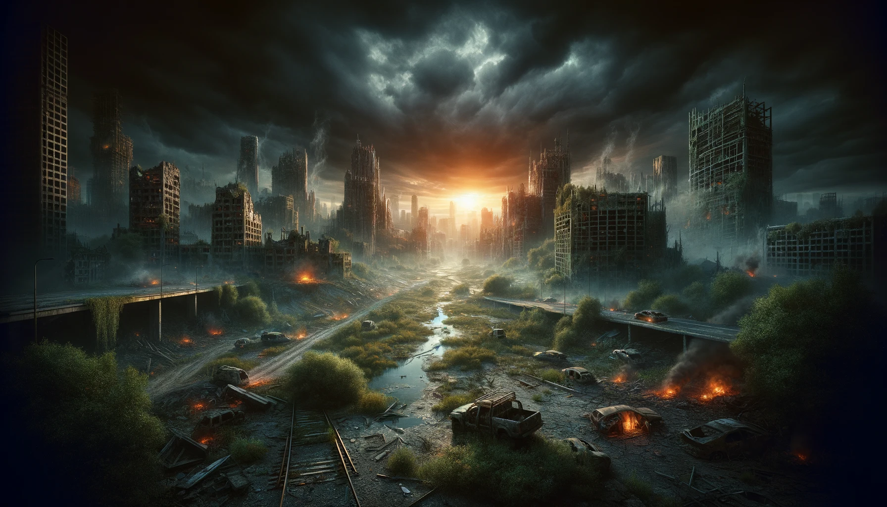 아포칼립스 테마는 예술 작품에서 강력한 시각적 요소로 자주 사용됩니다.
