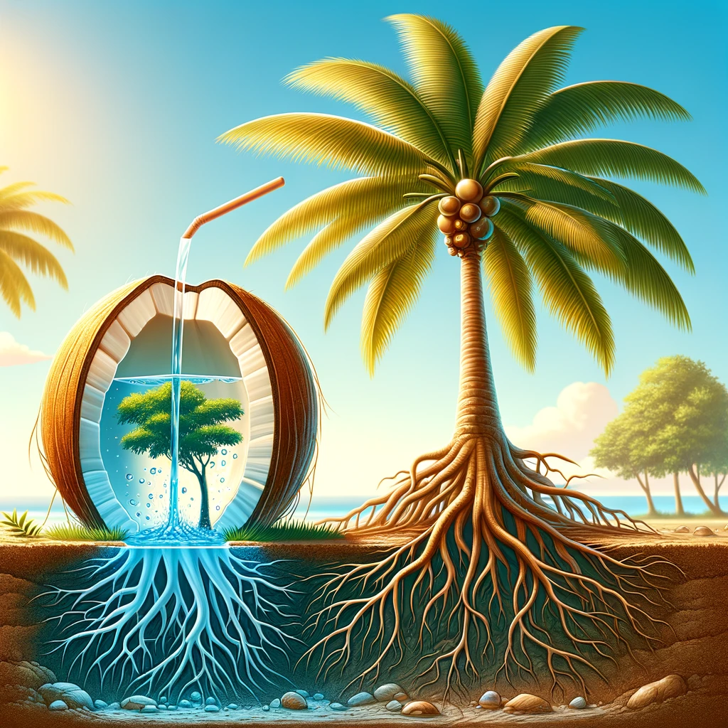 수분 흡수: 코코넛 나무는 뿌리를 통해 토양으로부터 수분과 영양분을 흡수합니다. 이 수분은 나무를 통해 코코넛으로 이동하게 됩니다.