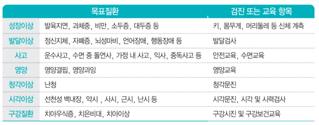 - 건강교육: 안전사고 예방, 영양, 수면, 전자미디어 노출