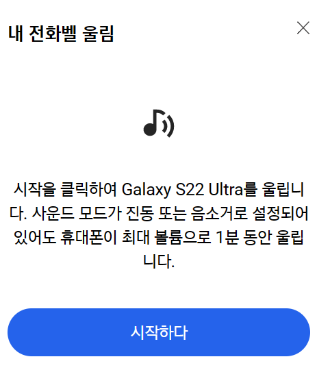 시작을 클릭하여 스마트폰을 울립니다. 사운드 모드가 진동 또는 음소거로 설정되어 있어도 휴대폰이 최대 볼륨으로 1분 동안 울립니다.