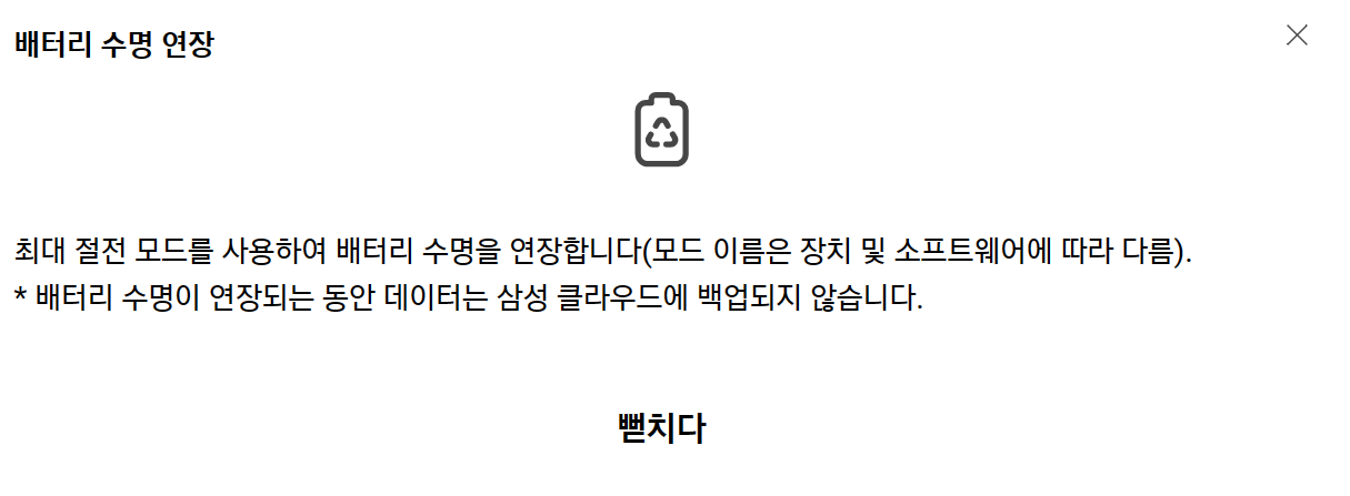 * 배터리 수명이 연장되는 동안 데이터는 삼성 클라우드에 백업되지 않습니다.