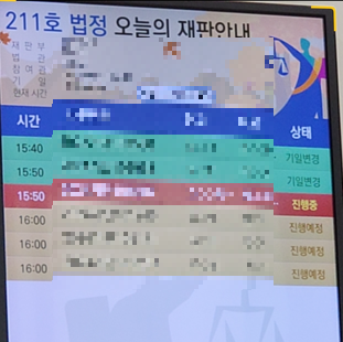 내 시간이 올때까지 잘 기다린 후, 법원 관계자가 부를때 들어갑니다.