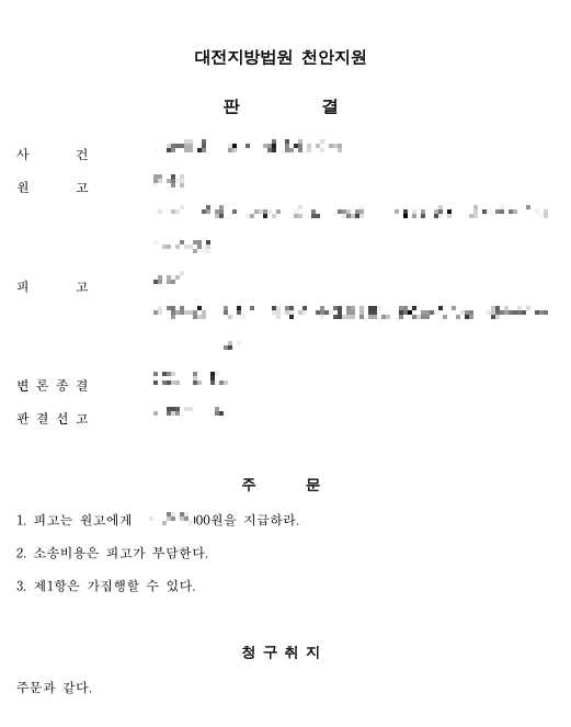 1. 피고는 원고에게 000원을 지급하라.