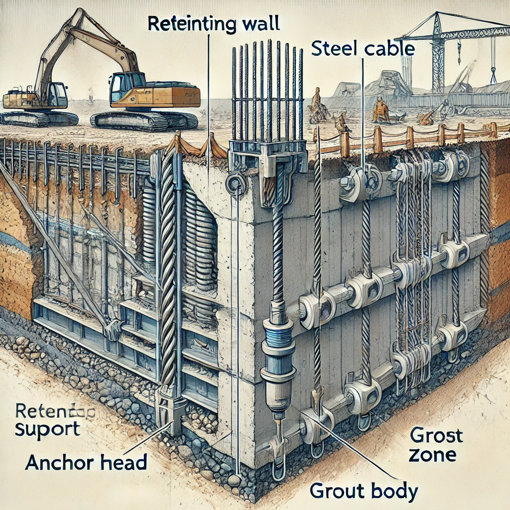 - 앵커 케이블(Anchor Cable): 토압을 지지하는 핵심 요소로, 강철 케이블이나 PHC 재질로 제작된다.