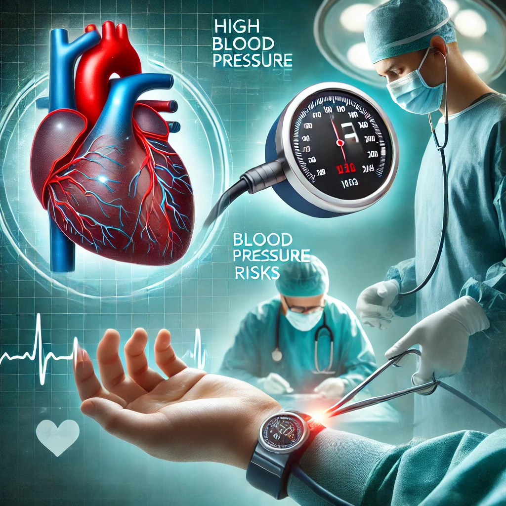 고혈압 상태에서는 혈관이 약해지고 탄력이 떨어져 출혈 위험이 커진다. 수술 중 출혈이 많아지면 수술 시간이 길어지고 회복이 어려워질 수 있다.